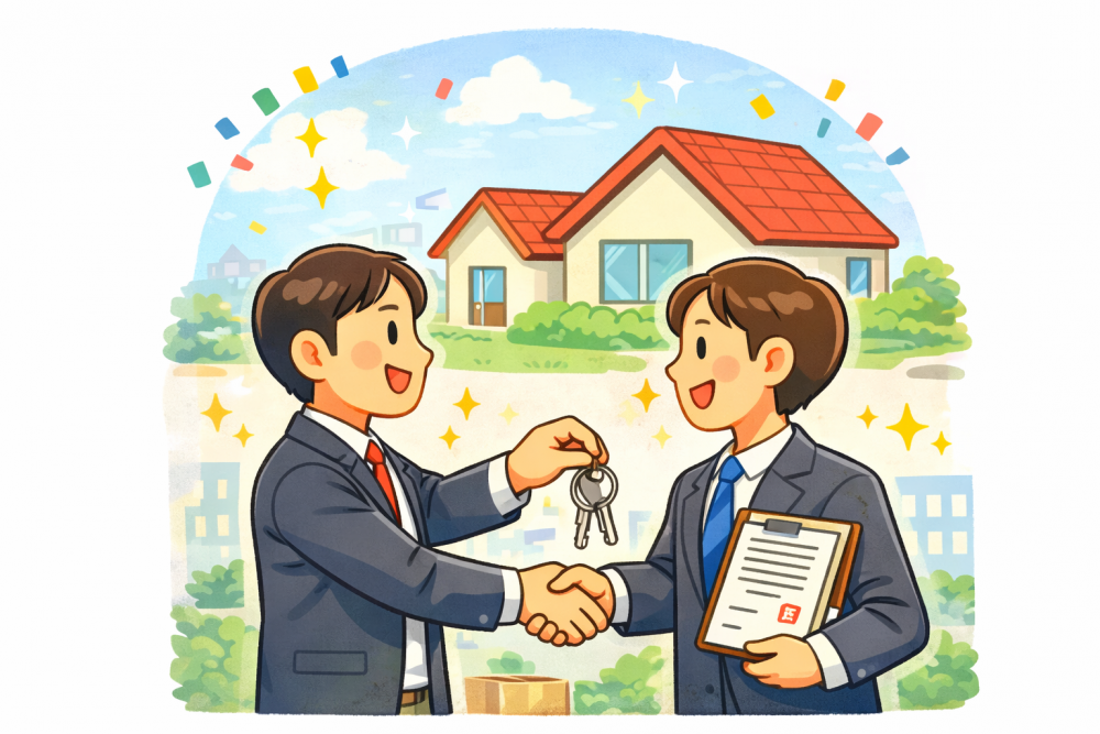 契約後、残代金の受け取りや登記手続きを行い、物件を引き渡します。