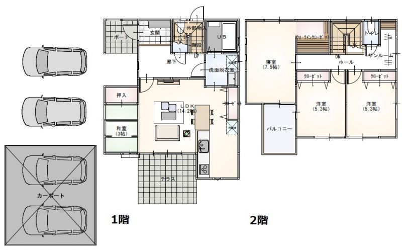 | 設備 | 温水洗浄便座、トイレ2ヶ所、システムキッチン、電気、都市ガス、上水道、下水道、駐車場3台分 | ||